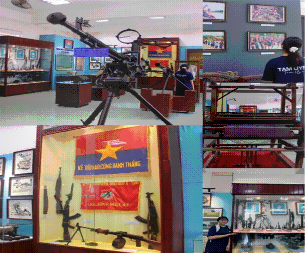 Nhưng phải đến khi bước vào hai phòng “kháng chiến chống Pháp” và “kháng chiến chống Mỹ”, cảm xúc của chúng em mới thực sự bị đẩy đến cao trào. Ở phòng kháng chiến chống Pháp, không gian như nén lại. Những hiện vật không nhiều về hình thức, nhưng lại dày đặc về ý nghĩa. Một khẩu súng cũ, một bức ảnh bạc màu, một kỷ vật giản đơn… tất cả đều mang theo dấu vết của một thời kỳ mà sự sống và cái chết chỉ cách nhau trong gang tấc. Điều khiến chúng em suy nghĩ không phải là chiến thắng, mà là cái giá của nó – những hy sinh lặng lẽ, những con người bình thường đã bước vào lịch sử bằng chính sự kiên cường của mình.