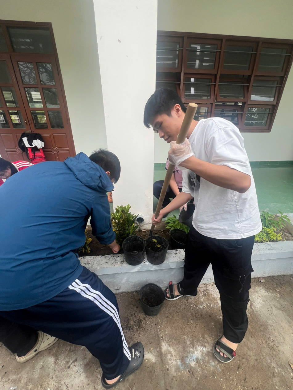 Điều đáng ghi nhận nhất là tinh thần trách nhiệm và sự phối hợp nhịp nhàng của tập thể lớp 12 Tin. Mỗi thành viên đều chủ động hoàn thành nhiệm vụ của mình và sẵn sàng hỗ trợ khi cần thiết. Khi những hàng cây non được trồng ngay ngắn và đứng vững trên nền đất, niềm vui và sự tự hào hiện rõ trên khuôn mặt của mọi người. Đó không chỉ là thành quả của lao động mà còn là kết quả của tinh thần đoàn kết và ý thức chung vì môi trường.