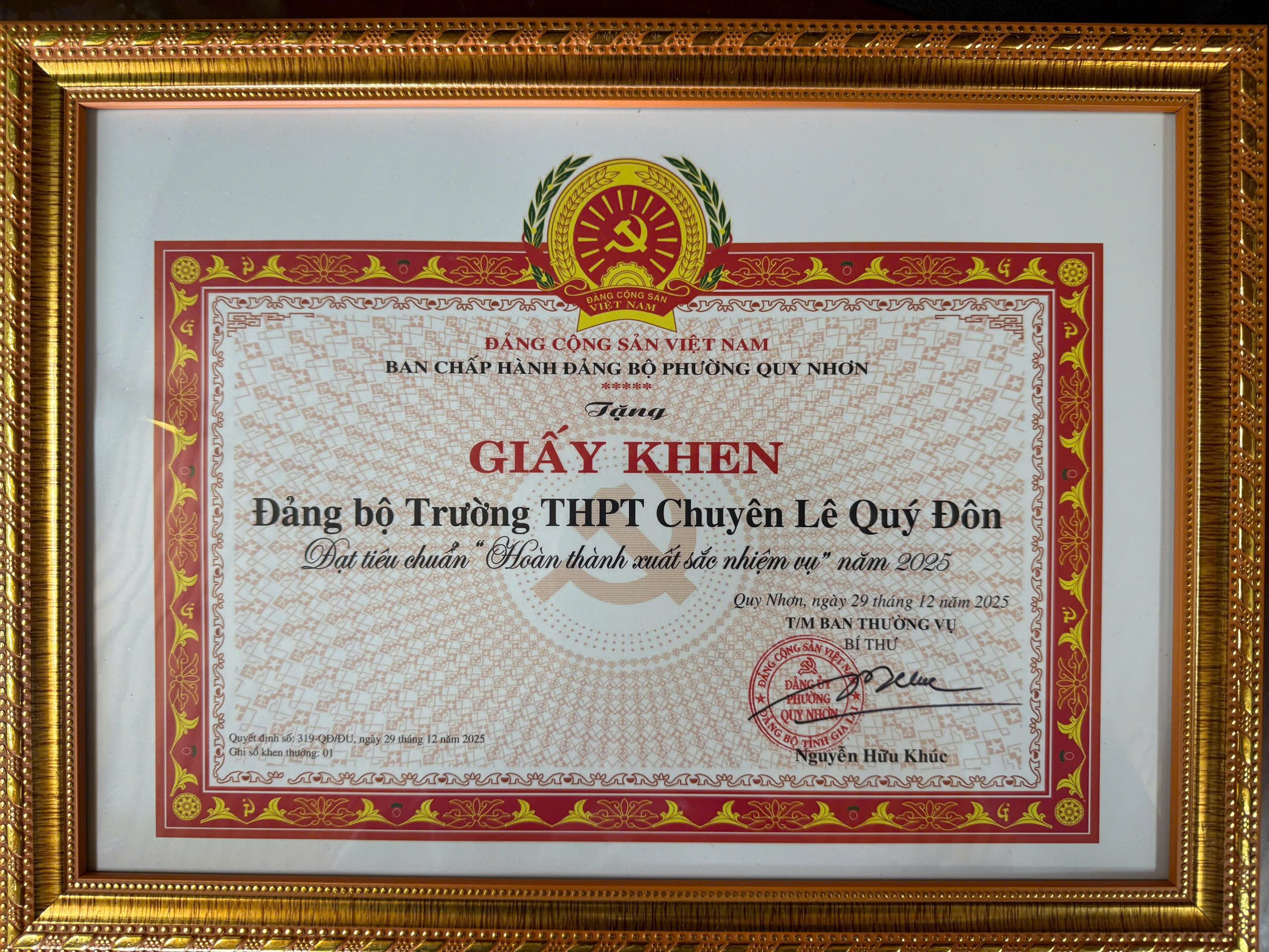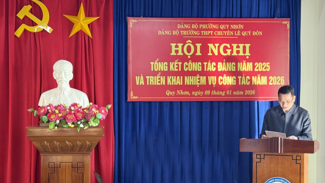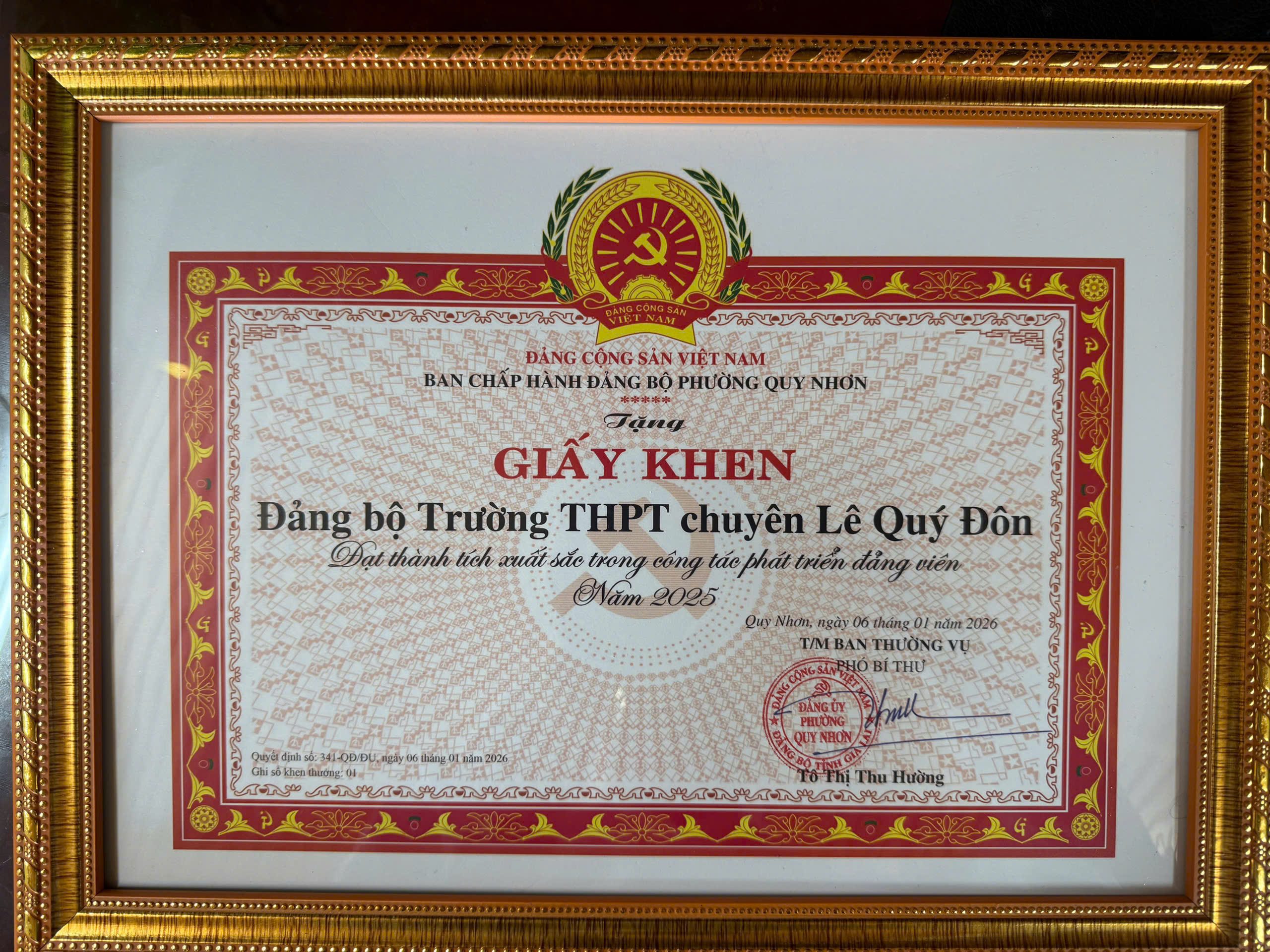 Năm 2025, trong bối cảnh sáp nhập, triển khai mô hình chính quyền địa phương 2 cấp, Đảng ủy trường THPT chuyên Lê Quý Đôn đã phát huy tinh thần đoàn kết, đổi mới phương thức lãnh đạo, chỉ đạo quyết liệt, thường xuyên tuyên truyền, phổ biến, quán triệt đến cán bộ, đảng viên, quần chúng các chỉ thị, nghị quyết của Đảng, chính sách, pháp luật của Nhà nước để cán bộ, đảng viên nâng cao nhận thức, nắm bắt, vận dụng, thực hiện trong chức năng, nhiệm vụ được giao.
