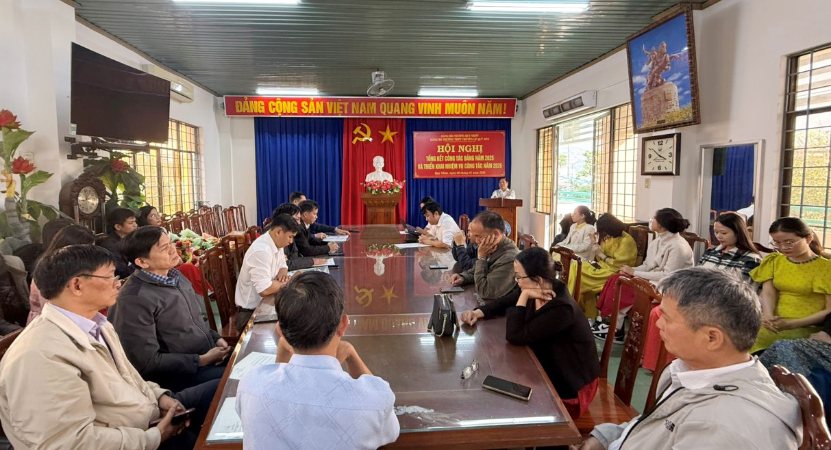 Trong năm 2025, Đảng ủy nhà trường đã chỉ đạo các chi bộ, Đoàn Thanh niên, Công đoàn phối hợp chặt chẽ trong công tác phát hiện, bồi dưỡng quần chúng ưu tú. Thông qua các phong trào thi đua dạy tốt – học tốt, rèn luyện đạo đức, lối sống, toàn Đảng bộ đã rà soát, quản lý 38 quần chúng ưu tú (35 học sinh, 3 giáo viên), trong đó 100% được tham gia lớp bồi dưỡng nhận thức về Đảng. Kết quả: Tổng số quần chúng được kết nạp Đảng là 32 đồng chí, vượt 05 đồng chí (tăng 18,5%) so với chỉ tiêu được giao (27 đồng chí); trong đó Chi bộ 1 kết nạp 12 đồng chí, Chi bộ 2 kết nạp 9 đồng chí, Chi bộ 3 kết nạp 11 đồng chí.