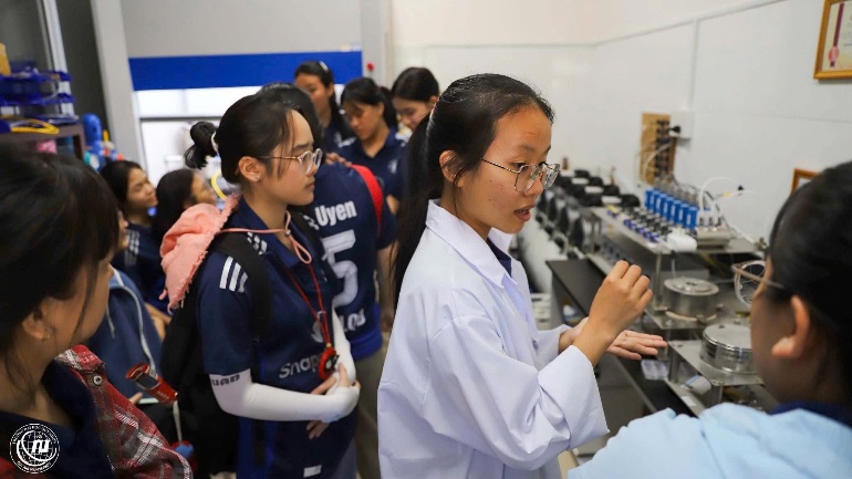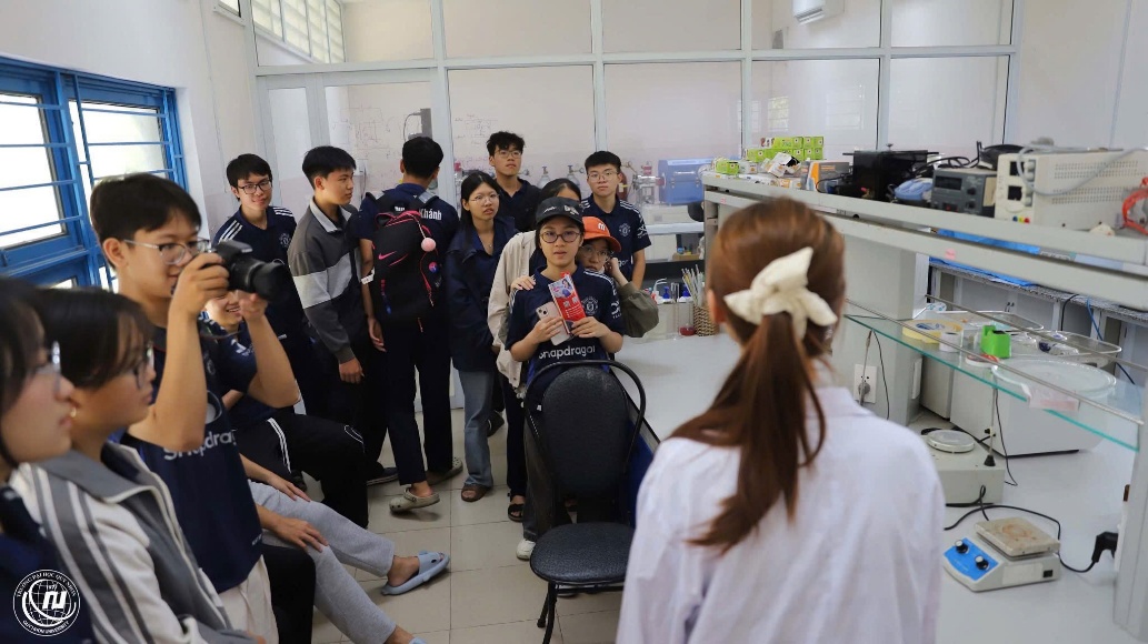 Trong số đó, phòng công nghệ vi sinh vật là nơi để lại ấn tượng sâu sắc nhất đối với chúng em. Dù chỉ được quan sát từ bên ngoài hành lang, chúng em vẫn có cơ hội tận mắt nhìn thấy các quy trình như nuôi sinh khối vi sinh vật, tạo môi trường, tách cấy mô… Những kiến thức vốn chỉ tồn tại trong sách vở nay trở nên trực quan và gần gũi, khơi dậy trong chúng em sự tò mò, hứng thú cũng như niềm yêu thích khám phá khoa học. Từ đó, chúng em nhận ra rằng việc học không chỉ dừng lại ở lý thuyết mà còn cần gắn liền với thực tế để hiểu sâu hơn những gì mình đã học.