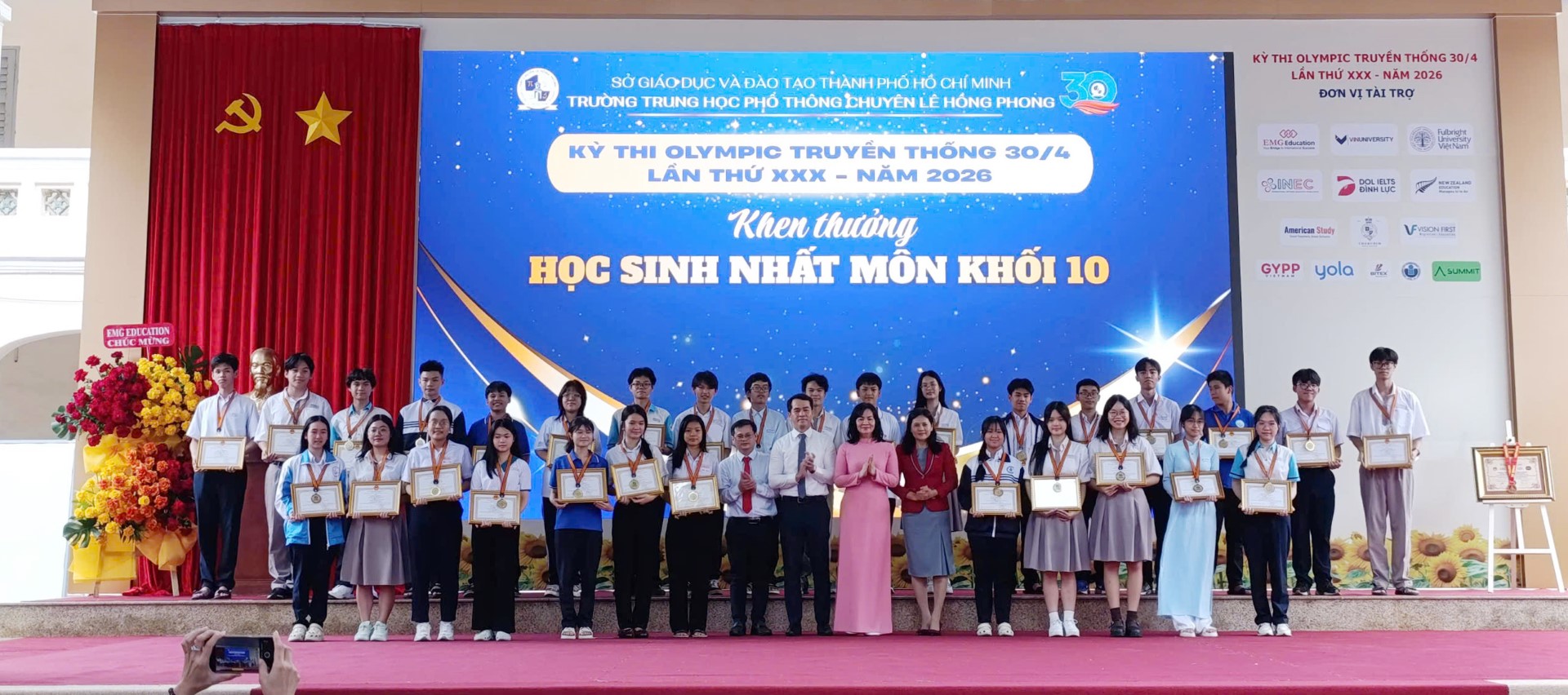 Sáng 5/4, Lễ tổng kết và trao giải Kỳ thi Olympic truyền thống 30/4 lần thứ XXX năm 2026 đã diễn ra tại Trường THPT chuyên Lê Hồng Phong (TP.HCM).