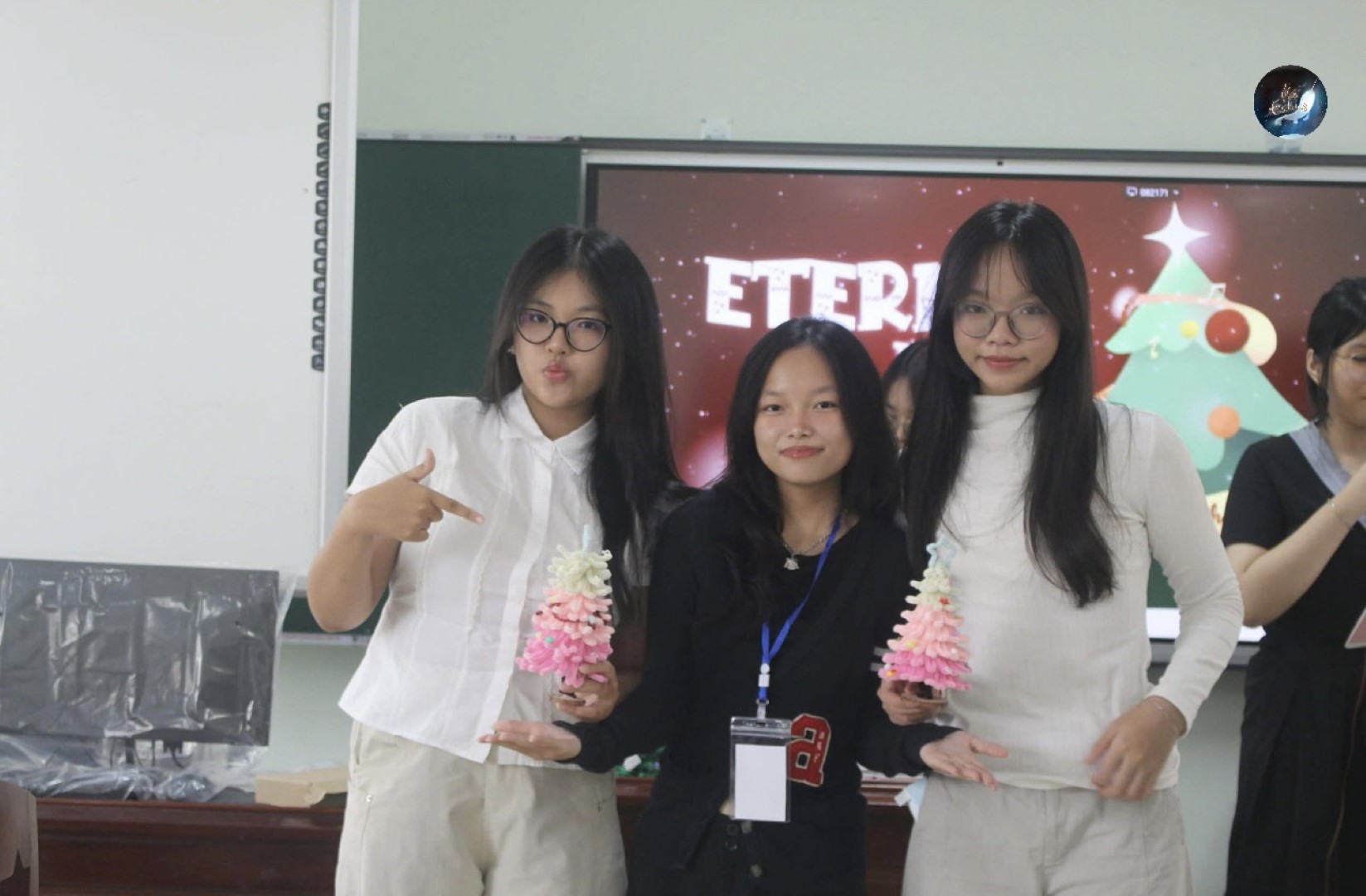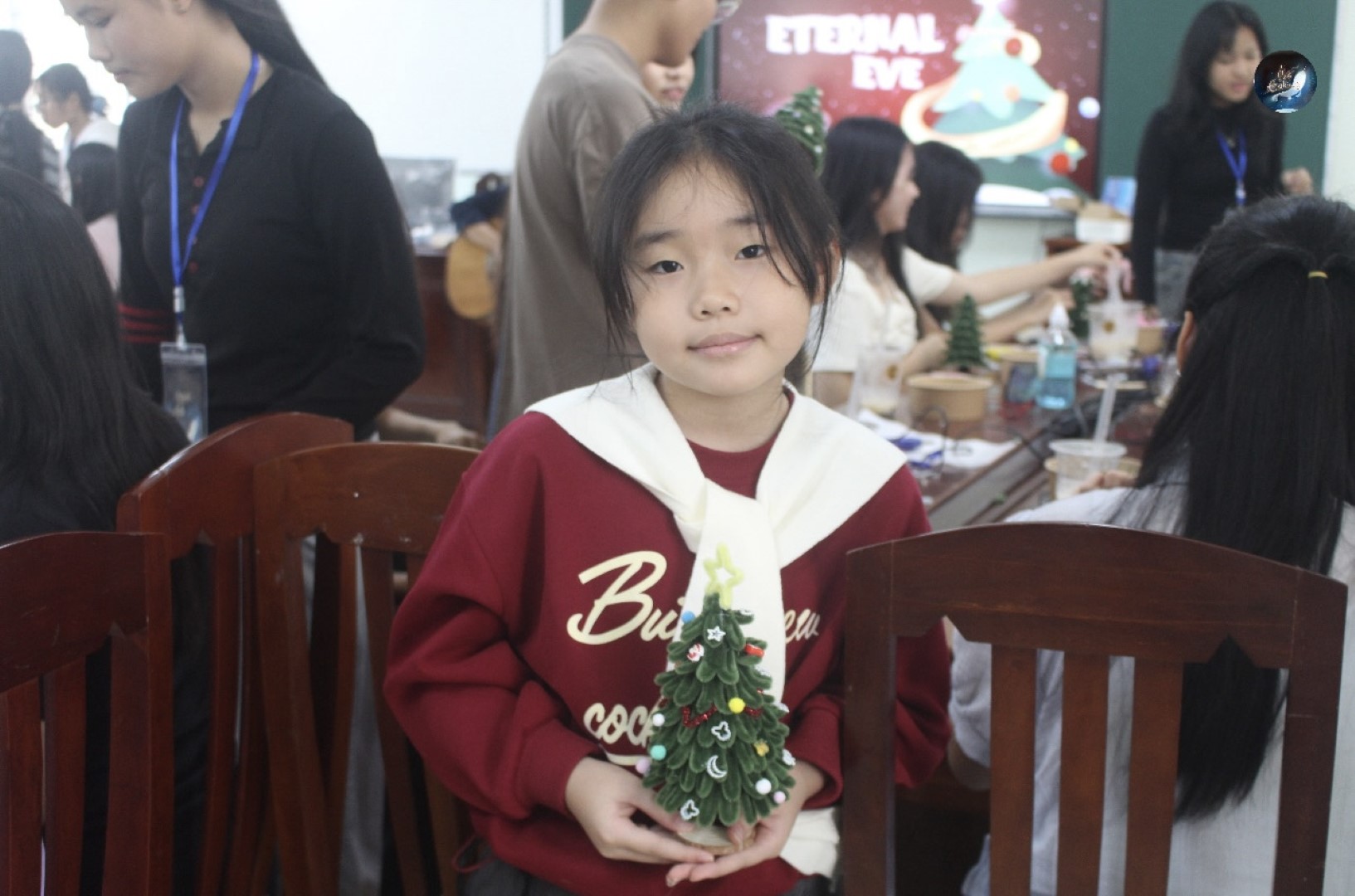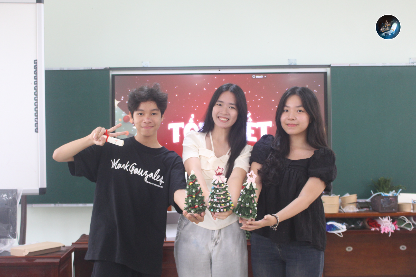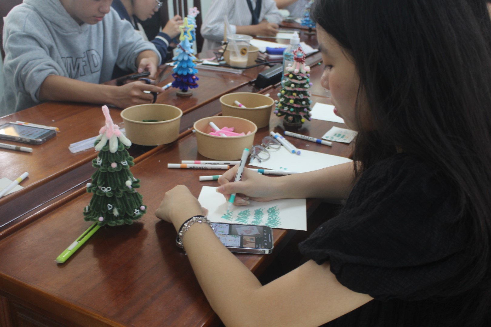 Sau những tiết mục âm nhạc mở màn, Workshop “Eternal Eve” tiếp tục với hoạt động trải nghiệm chính là làm cây thông Giáng sinh từ những sợi kẽm nhung nhiều màu sắc. Dưới sự hướng dẫn và hỗ trợ của các thành viên Câu lạc bộ, người tham gia được tự do sáng tạo, thiết kế cây thông theo sở thích và cá tính riêng. Từng chi tiết được uốn nắn cẩn thận, kết hợp linh hoạt về màu sắc và hình dáng, đã tạo nên những sản phẩm thủ công độc đáo, góp phần lan tỏa trọn vẹn không khí Giáng sinh ấm áp.