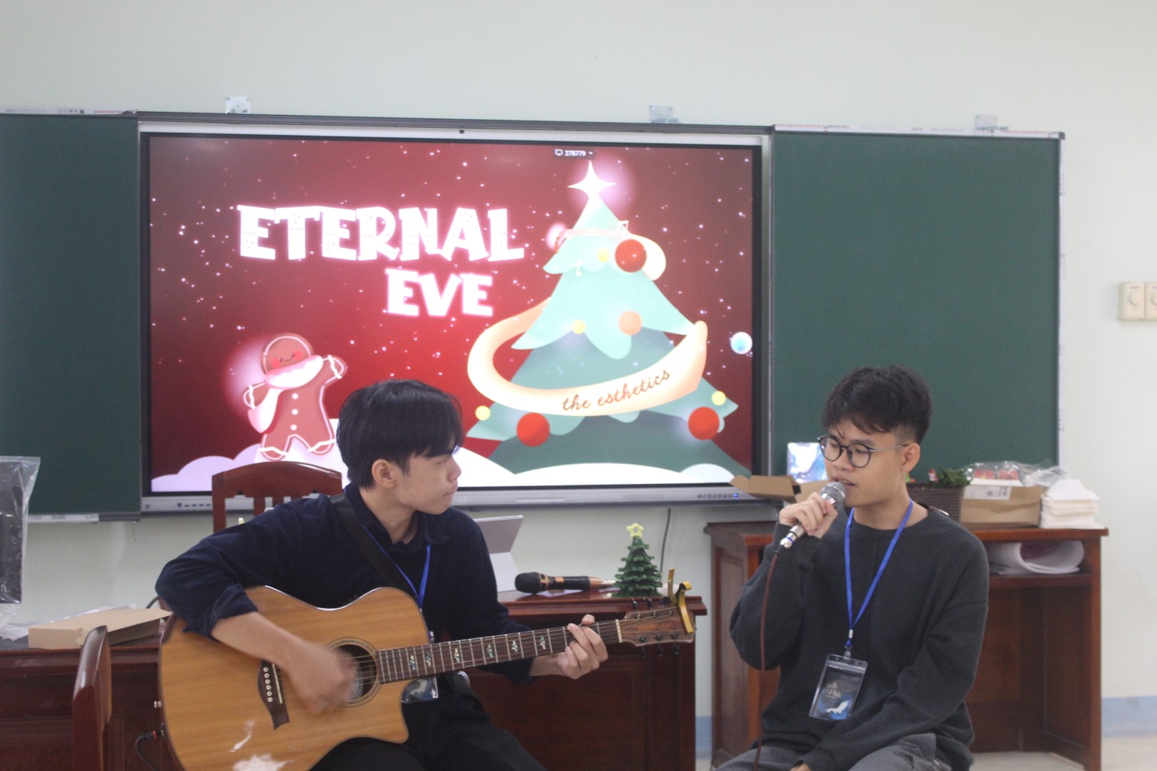 Ngay từ những giây phút đầu diễn ra workshop, không gian đã được khuấy động bởi những giai điệu Giáng sinh rộn rã do Ban Nhạc của Câu lạc bộ Nghệ thuật mang đến. Những khúc ca ấm áp, vui tươi vang lên như mở ra một buổi workshop giàu cảm xúc, giúp không gian như chậm lại, và người tham gia cùng hòa mình vào không khí lễ hội đang đến gần, sẵn sàng cho hành trình trải nghiệm phía trước.
