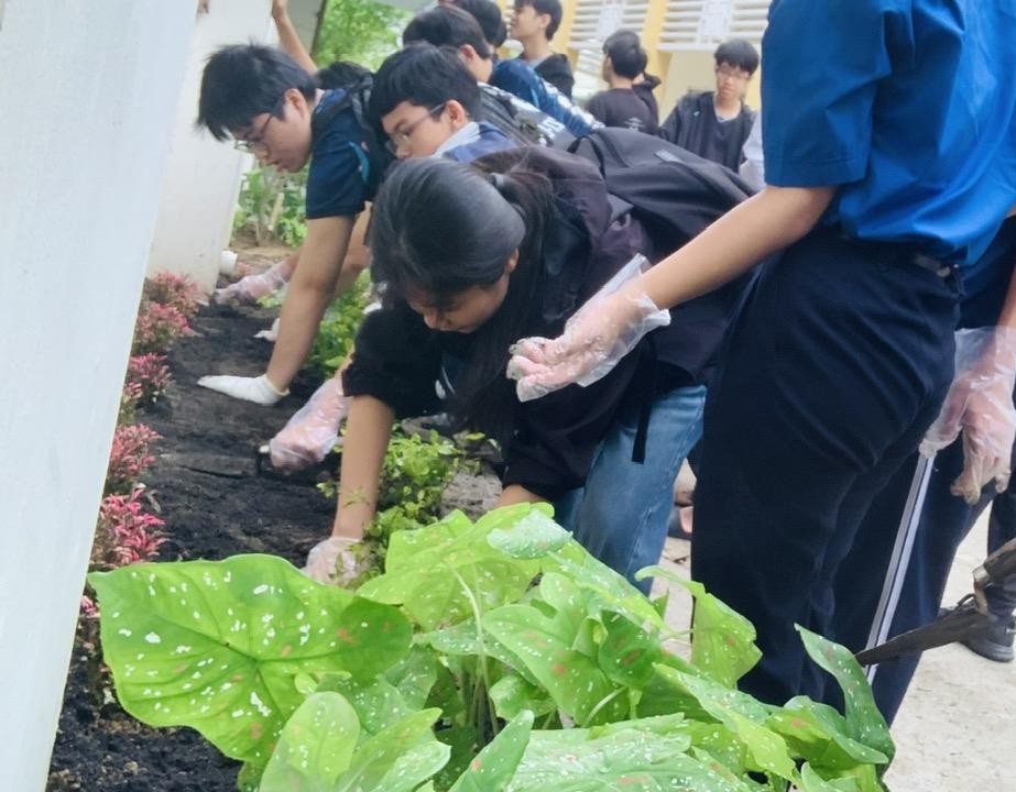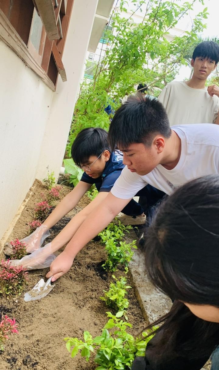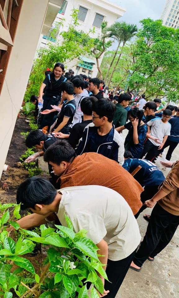 Khi hoạt động bắt đầu, tập thể lớp 10 Lý nhanh chóng chia nhau thực hiện công việc. Người đào hố, người đặt cây, người vun đất và người tưới nước. Mỗi công việc tuy nhỏ nhưng đều đòi hỏi sự cẩn thận và phối hợp nhịp nhàng. Những đôi tay vốn quen với sách vở, bảng phấn và các bài học trên lớp, nay cùng nhau chạm vào đất, cảm nhận rõ hơn giá trị của lao động. Dù có lúc mệt, có lúc tay chân lấm lem bùn đất, nhưng không ai than phiền. Trái lại, ai cũng vui vẻ vì được góp công sức của mình cho tập thể và cho ngôi trường thân yêu.