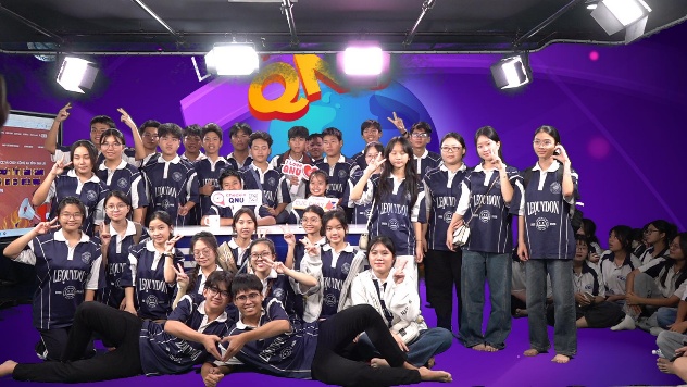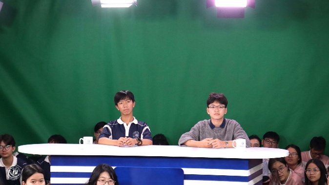 Ngay khi bước vào phòng studio, chúng em thật sự ấn tượng với hệ thống thiết bị chuyên nghiệp như máy quay, đèn chiếu sáng, phông nền xanh và màn hình lớn. Các anh chị hướng dẫn đã giới thiệu cho chúng em về cách vận hành một buổi ghi hình, từ việc chuẩn bị kịch bản, bố trí ánh sáng cho đến cách đứng trước ống kính sao cho tự nhiên và tự tin.