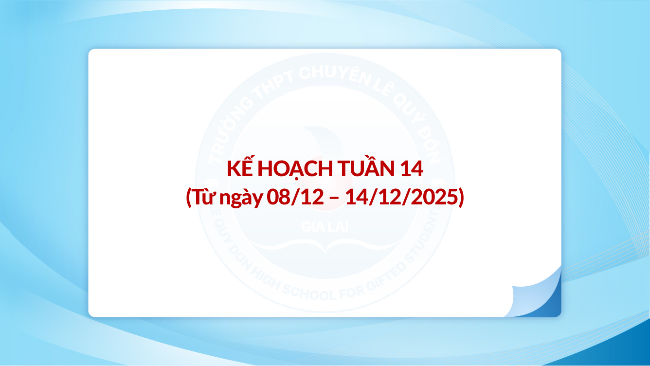 Kế hoạch Tuần 14 (từ ngày 08/12 – 14/12/2025)