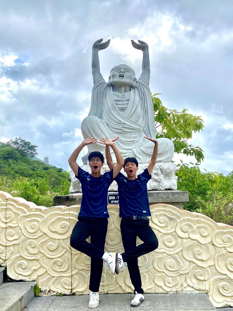 Đặt chân đến đây, chúng em không khỏi choáng ngợp trước cảnh sắc thiên nhiên hùng vĩ: một bên là biển cả mênh mông, một bên là núi non trùng điệp. Mỗi thành viên đều lặng lẽ bước đi trên những bậc đá dẫn lên chùa, lắng nghe tiếng chuông chùa vang vọng giữa không trung, để rồi thấy lòng mình như dịu lại giữa bao bộn bề thường nhật của cuộc sống , cũng như tạm gác đi phiền muộn mà hòa mình vào không khí chung vui khi cả lớp cùng nhau leo lên các bậc tam cấp để lên tới đỉnh chùa.