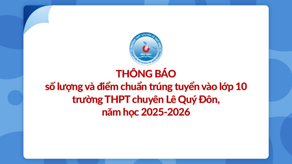 THÔNG BÁO số lượng và điểm chuẩn trúng tuyển vào lớp 10 trường THPT chuyên Lê Quý Đôn, năm học 2025-2026