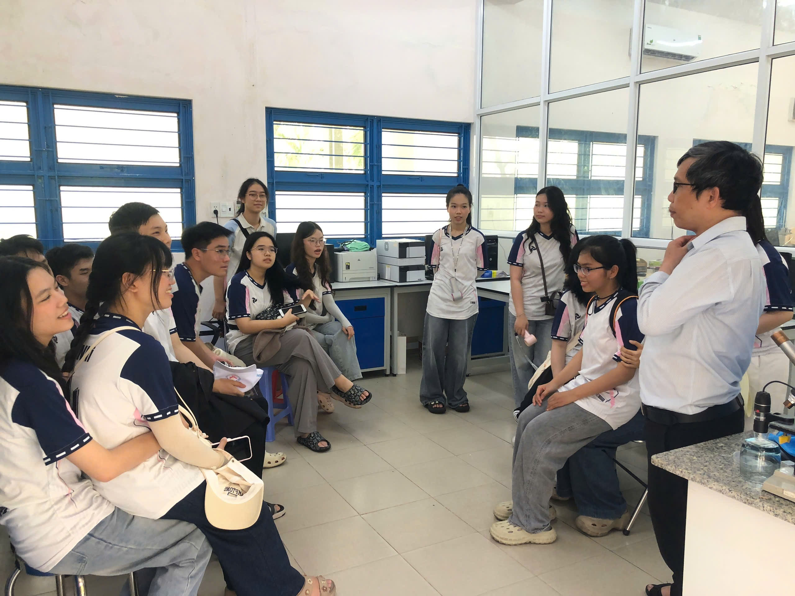 Điểm đến cuối cùng là thế giới của những tri thức chuyên sâu: các ngành nghiên cứu khoa học. Học sinh được tham quan các phòng thí nghiệm hiện đại, nơi những công trình nghiên cứu đang được ấp ủ. Không gian học tập nghiêm túc, hiện đại ấy cùng hình ảnh các anh chị sinh viên say mê nghiên cứu đã để lại trong chúng em rất nhiều cảm xúc. Chúng em nhận ra rằng đại học không chỉ là nơi học để lấy kiến thức, mà còn là nơi nuôi dưỡng ước mơ, rèn luyện bản thân và tạo ra những giá trị mới cho cộng đồng. Chính từ những hình ảnh rất thực ấy, nhiều bạn trong lớp đã bắt đầu tự hỏi mình phù hợp với ngành nào, cần cố gắng ra sao và phải chuẩn bị gì cho chặng đường phía trước.